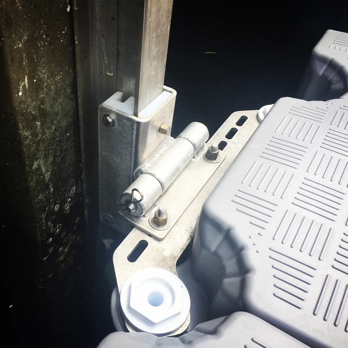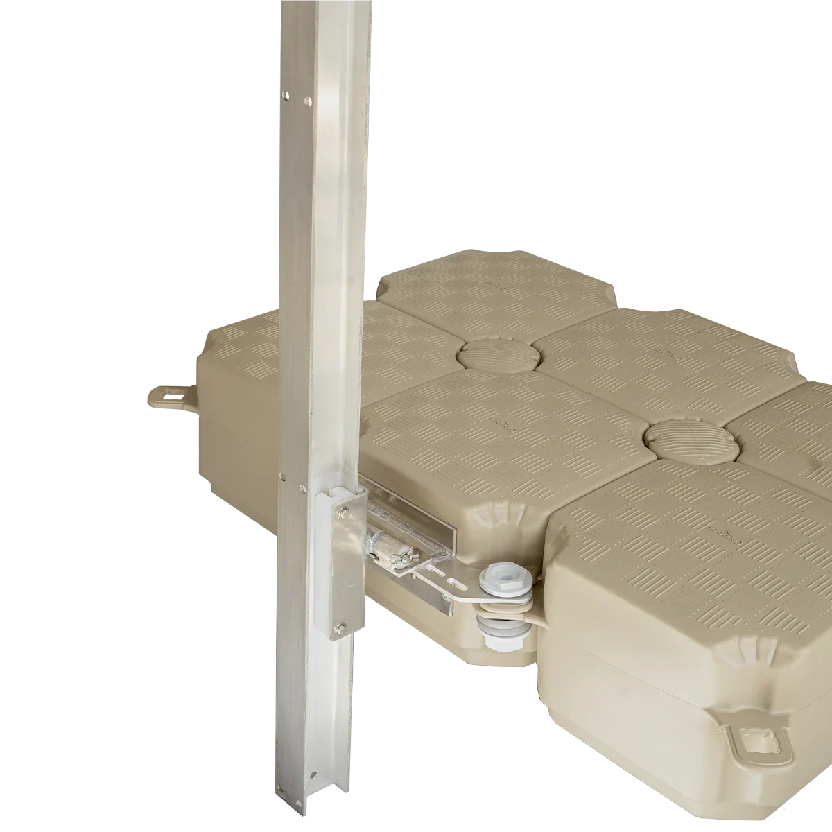 Sa structure verticale de 8 pieds permet au quai de coulisser avec une fluidité absolue sur toute l'amplitude des variations d'eau, tout en garantissant un maintien latéral rigide contre le quai.