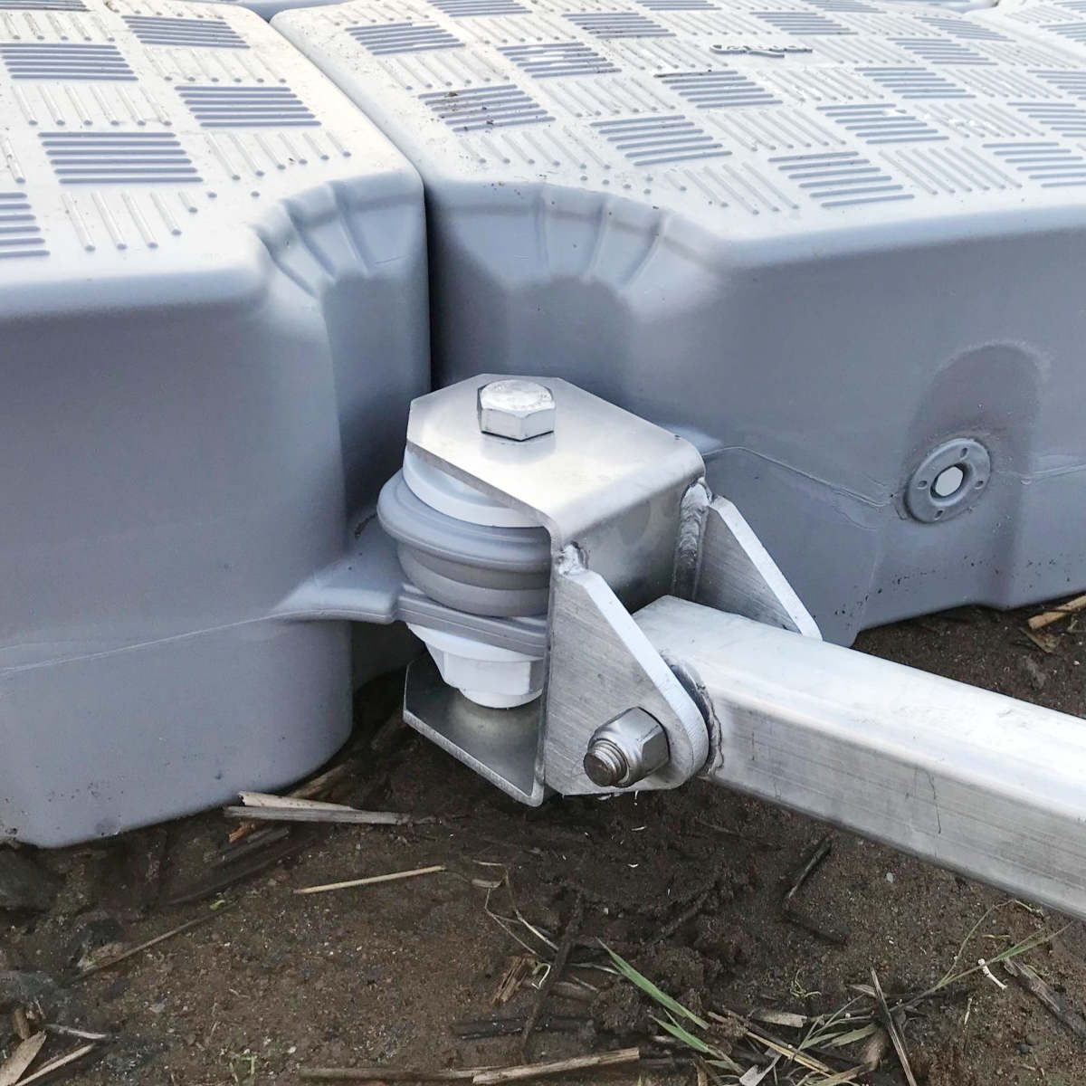 Installé perpendiculairement à la rive, ce système agit comme un stabilisateur dynamique : il maintient le quai à une distance constante du bord tout en permettant une amplitude de mouvement vertical optimale.