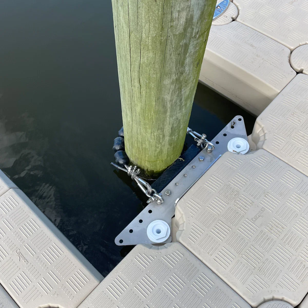 Conçu pour s'adapter aux infrastructures existantes (pieux de 15 à 40 cm), ce support permet d'intégrer une plateforme flottante à des piliers déjà en place sans travaux lourds.