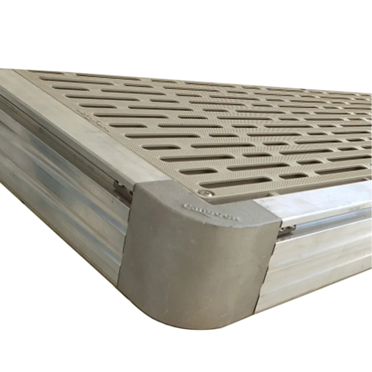 Bien que des matériaux alternatifs soient possibles, il est important de noter que les planchers en plastique servent d'élément structurel sur la passerelle. Si vous optez pour un autre matériau, veillez à le fixer solidement à l'aide de vis dans l'aluminium afin de préserver l'intégrité structurelle.