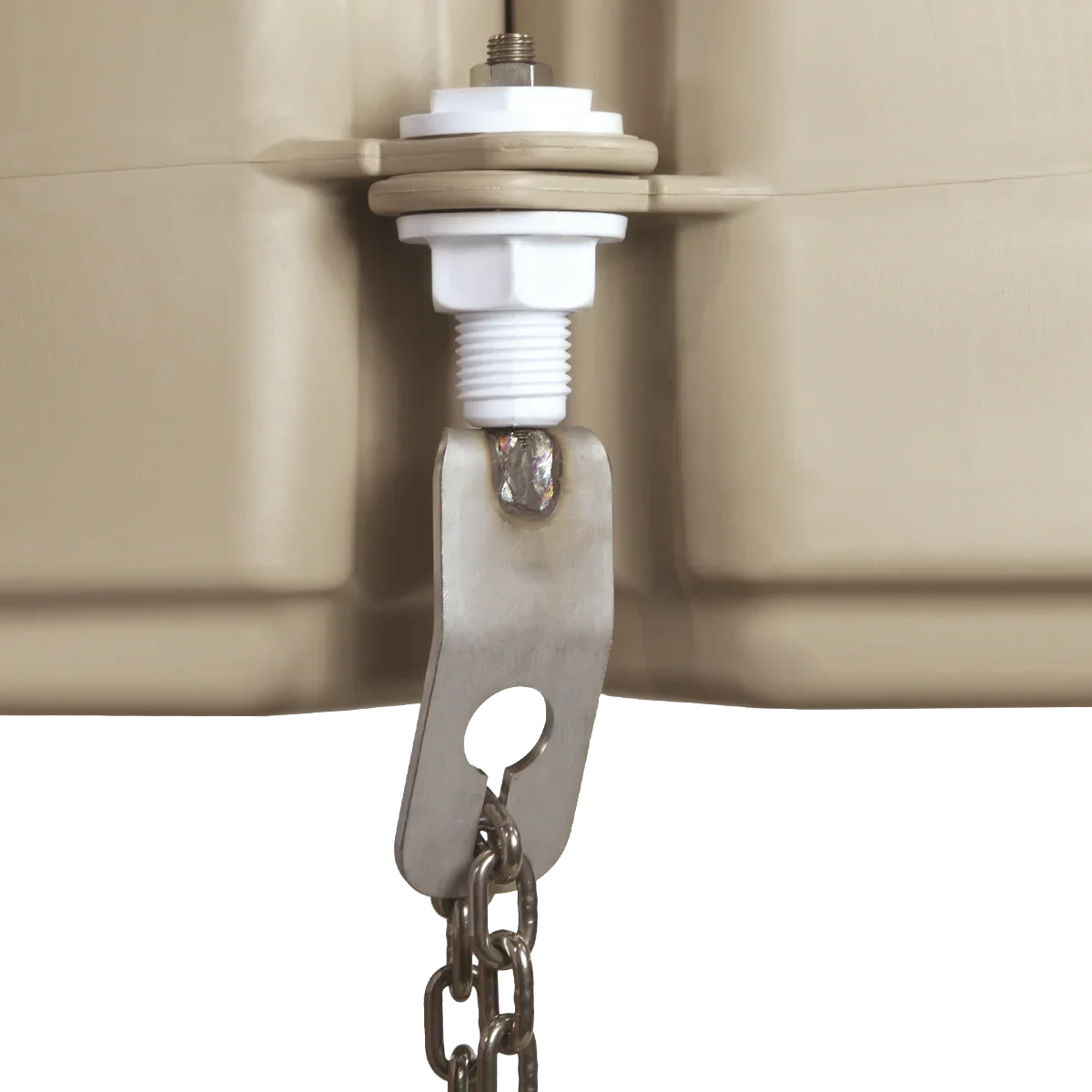 Une fois la tension optimale obtenue, la chaîne se verrouille dans l'encoche de sécurité via une manille, garantissant un positionnement stable et un maintien permanent de la géométrie de votre quai.