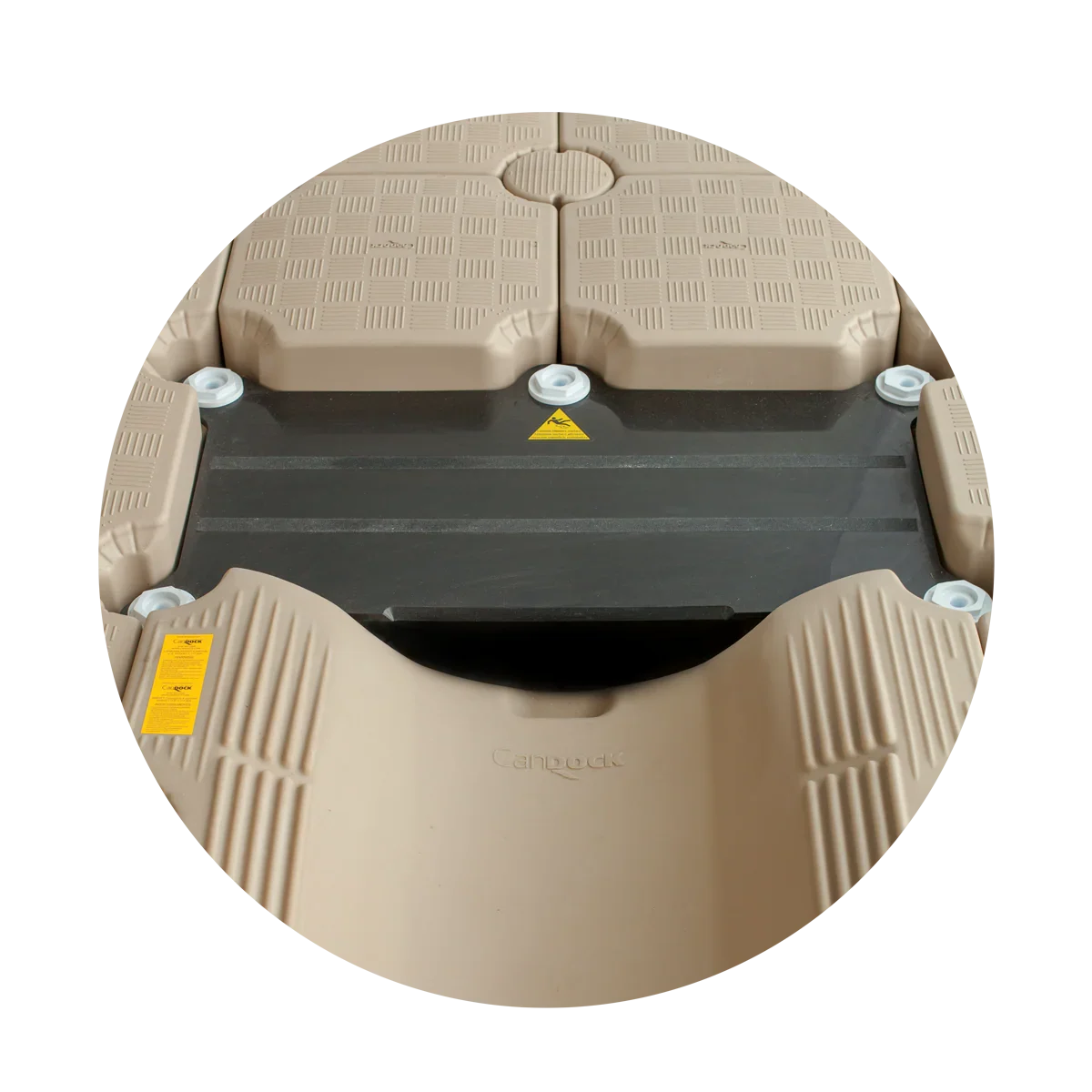 La plaque est fabriquée à partir d'un polyéthylène haute densité (HDPE) d'un demi-pouce d'épaisseur, ce qui la rend très durable. On peut marcher dessus sans problème. Bien qu'elle puisse fléchir légèrement, cela est tout à fait normal et ne pose aucun problème.