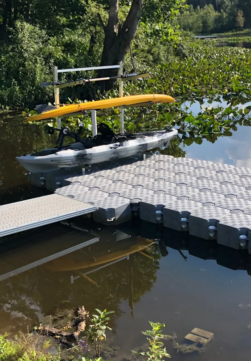Optimisez l'espace de votre plateforme avec notre support modulaire pour kayaks, canoës et SUP.