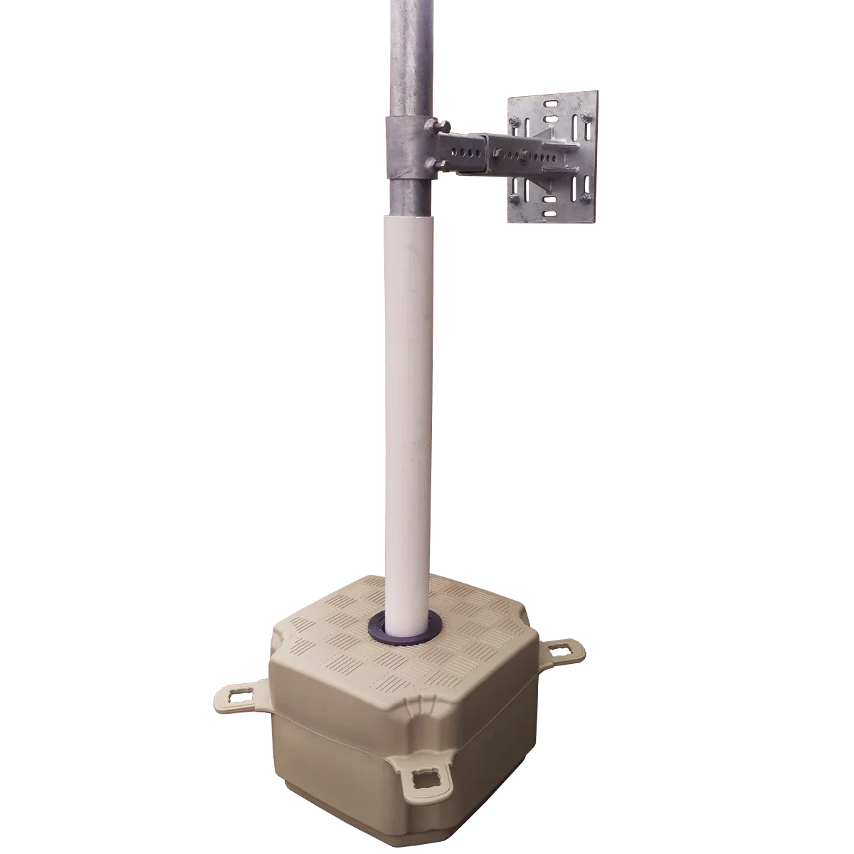 Le support de pieu déporté agit comme un multiplicateur de stabilité pour votre installation.