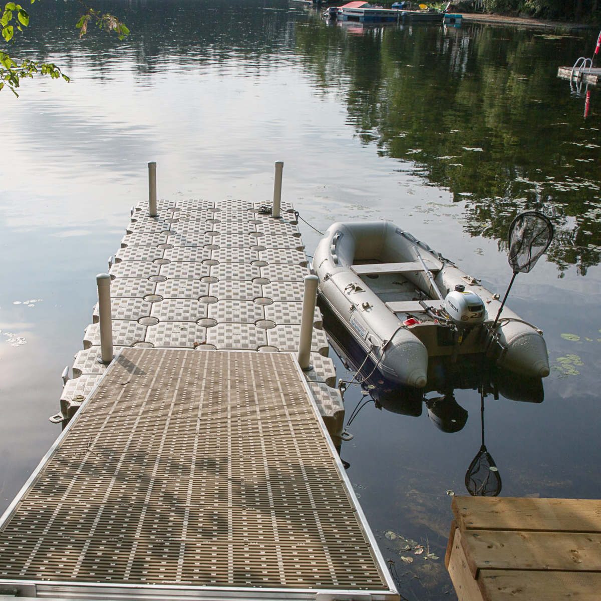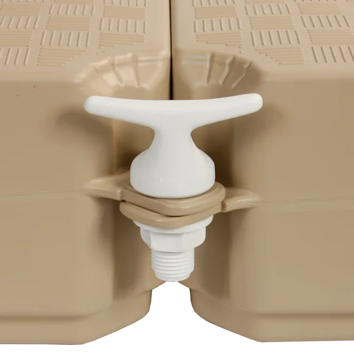 Bien que nos taquets en polymère haute résistance soient conçus pour un usage quotidien intensif, nous recommandons, lors de conditions météo extrêmes, de sécuriser l'amarrage directement via les oreilles de connexion des cubes pour une résistance structurelle maximale.
